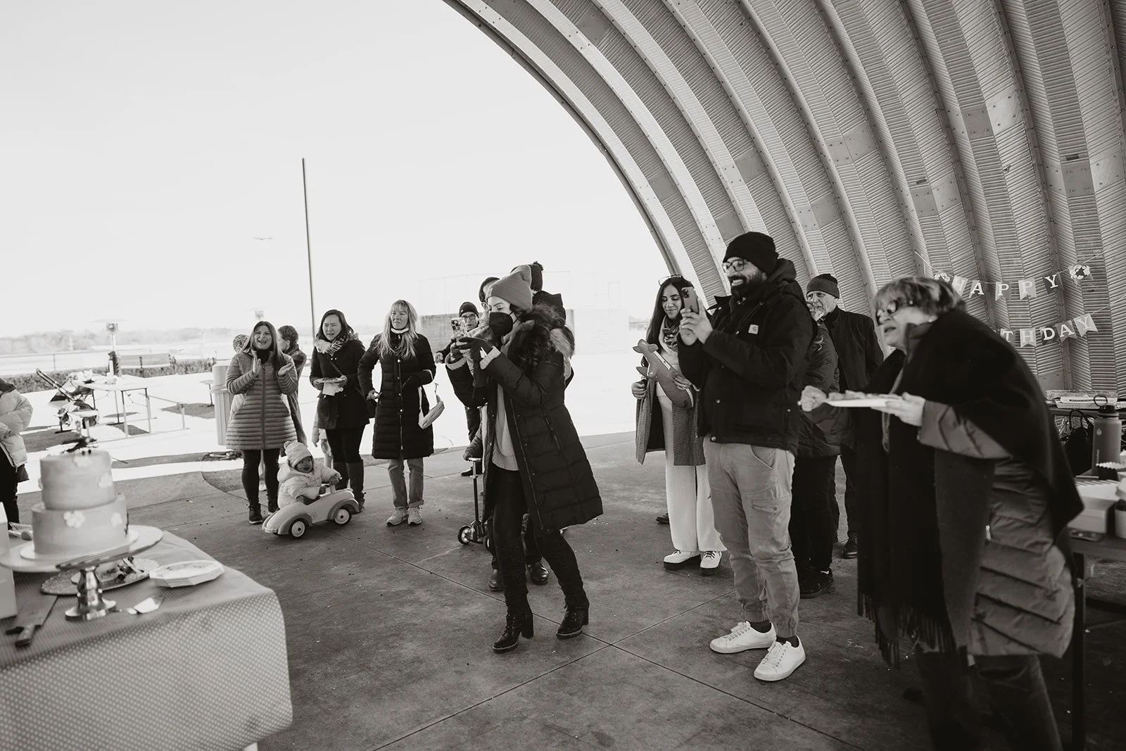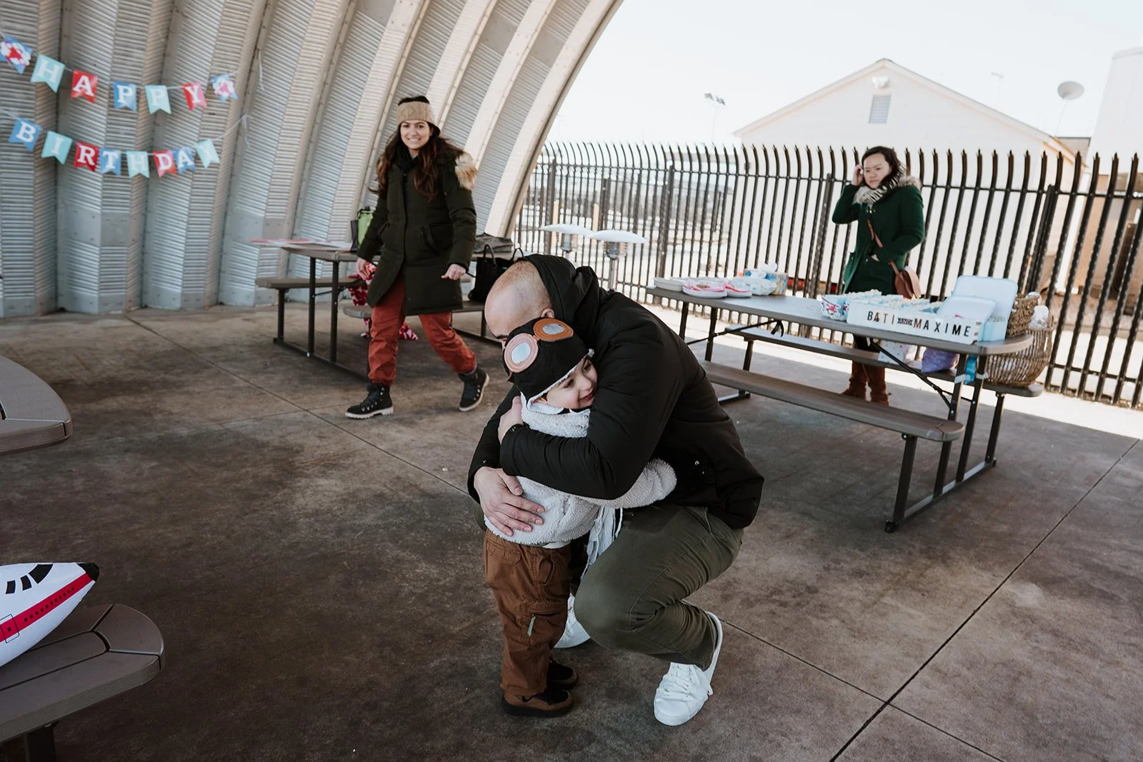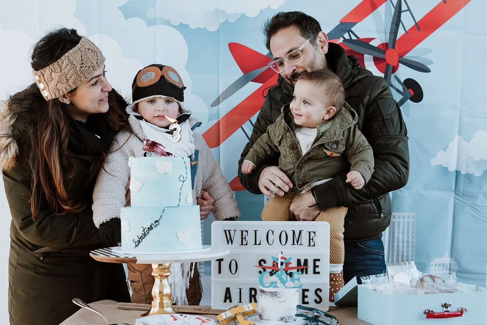 We had so much fun watching the planes take off, playing on the playground with our friends, eating popcorn, pizza and cake - a big one for Basti and a little one for Maxime! Thanks to everyone who made this first year as a family of four a good one and for all the friends who joined us for takeoff and braved the cold.